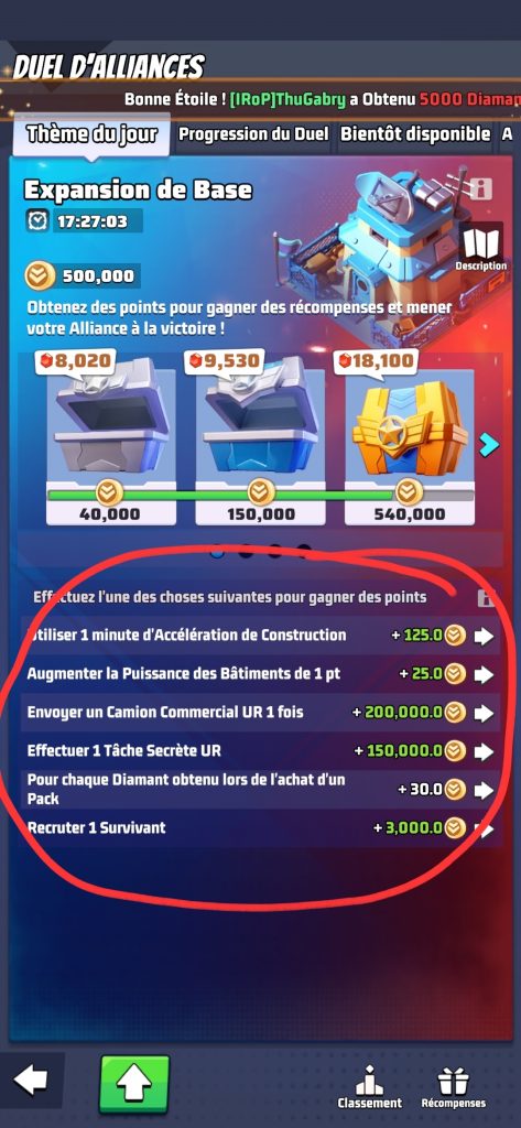 De plus merci de bien vouloir respecter des tâches quotidiennes du VS et vous focaliser sur celles-ci, elles sont prioritaires ! Aujourd’hui vous ne devez pas envoyer de camion SR ou SSR, vous ne devez pas envoyer de tâches secrètes SR ou SSR ! Vous devez envoyer que du UR (tâches secrètes ET camions)!