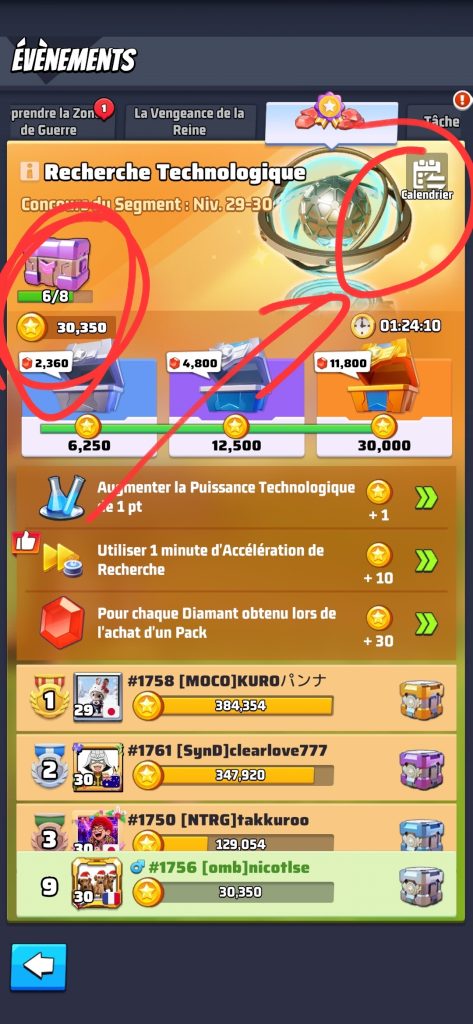 Vous pouvez bien évidemment aussi ouvrir vos coffres de la Caa (courses aux armes) mais ce n’est pas prioritaire, ne cherchez pas à tout prix à gagner la course aux armes, si vous ouvrez vos 18 coffres de la caa c’est déjà très bien !