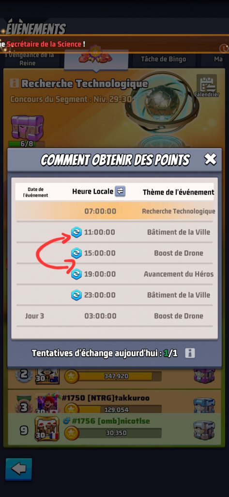 rappelez vous aussi que depuis quelques temps maintenant vous pouvez intervertir 2 courses aux armes une fois par jour, ce qui est très utile pour la faire correspondre avec le secrétariat ! Si vous ne maîtrisez pas bien le secrétariat (indispensable les mardi et mercredi) faites le nous savoir sur le chat d’alliance !
